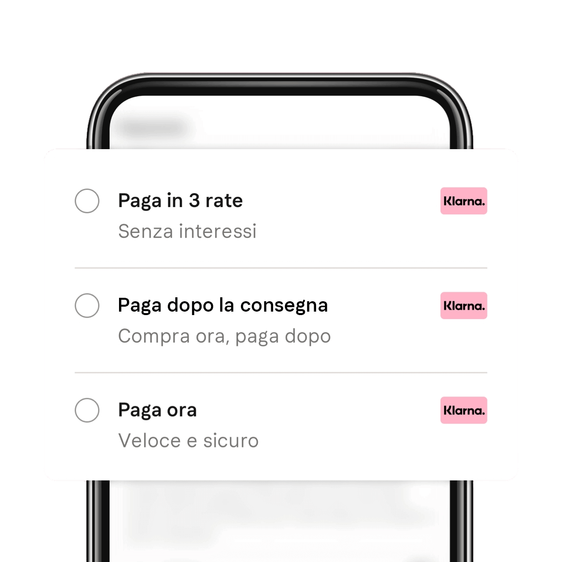 Richiedi ora i nostri servizi e paga dopo in 3 rate senza interessi con Klarna.